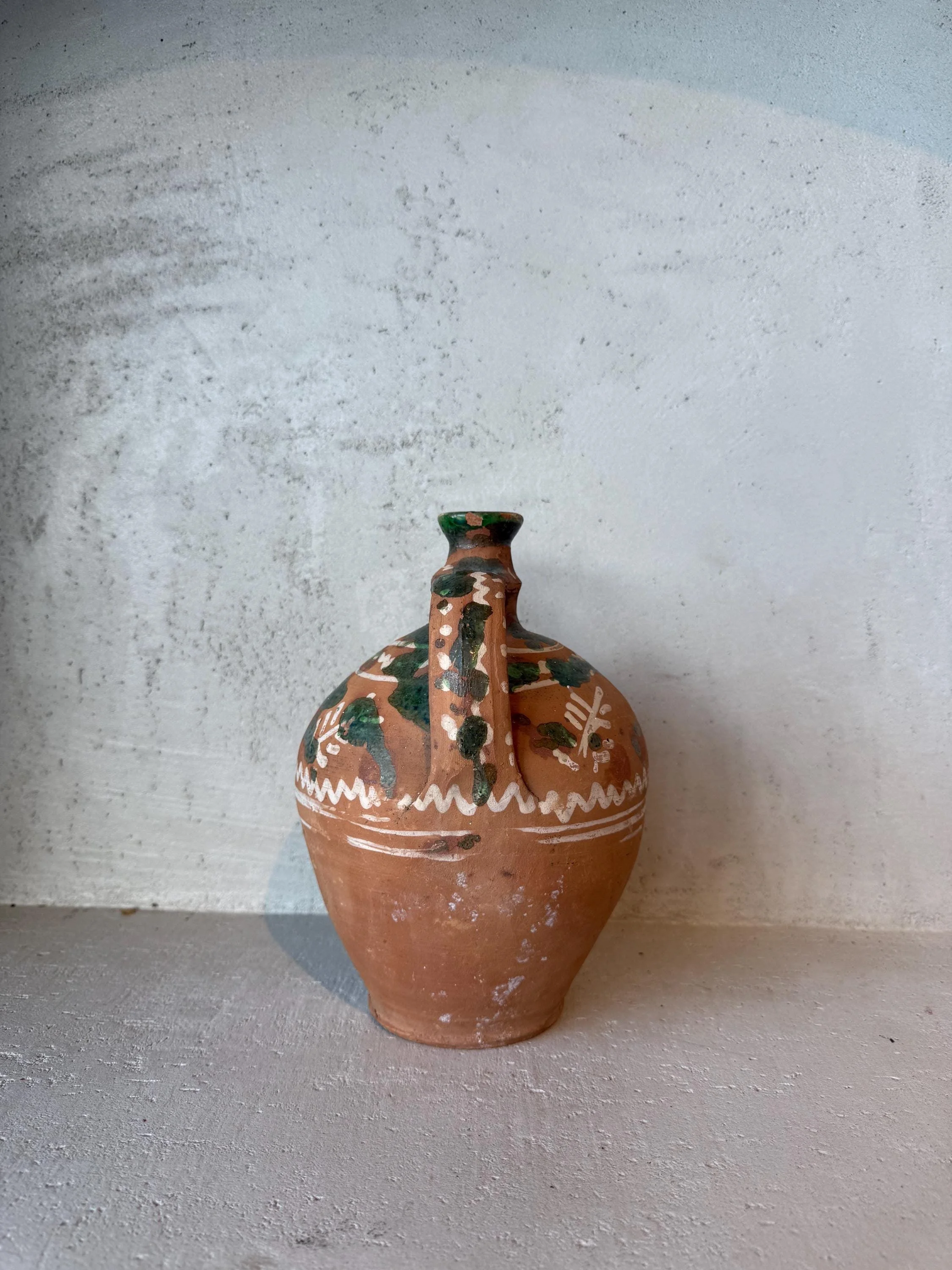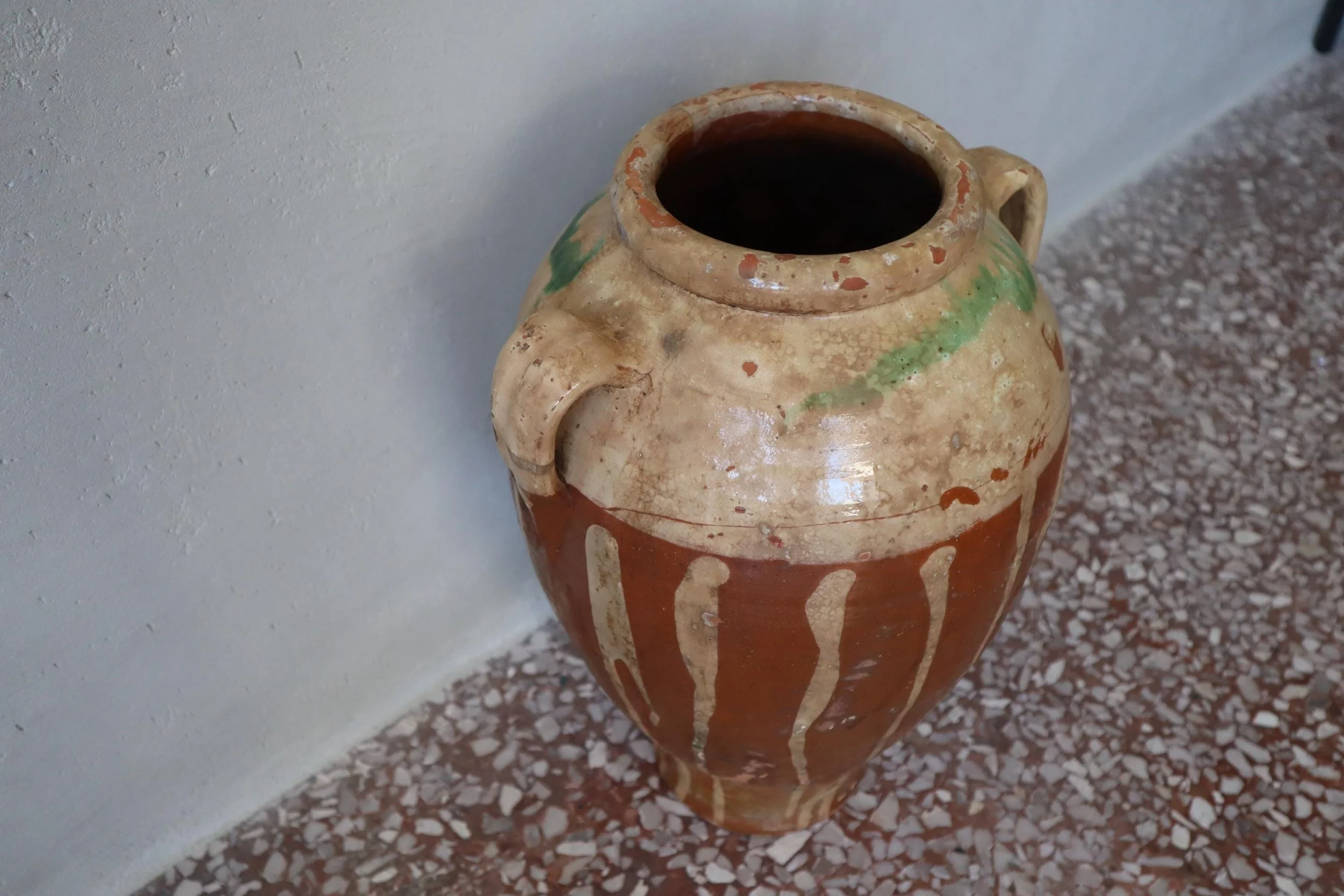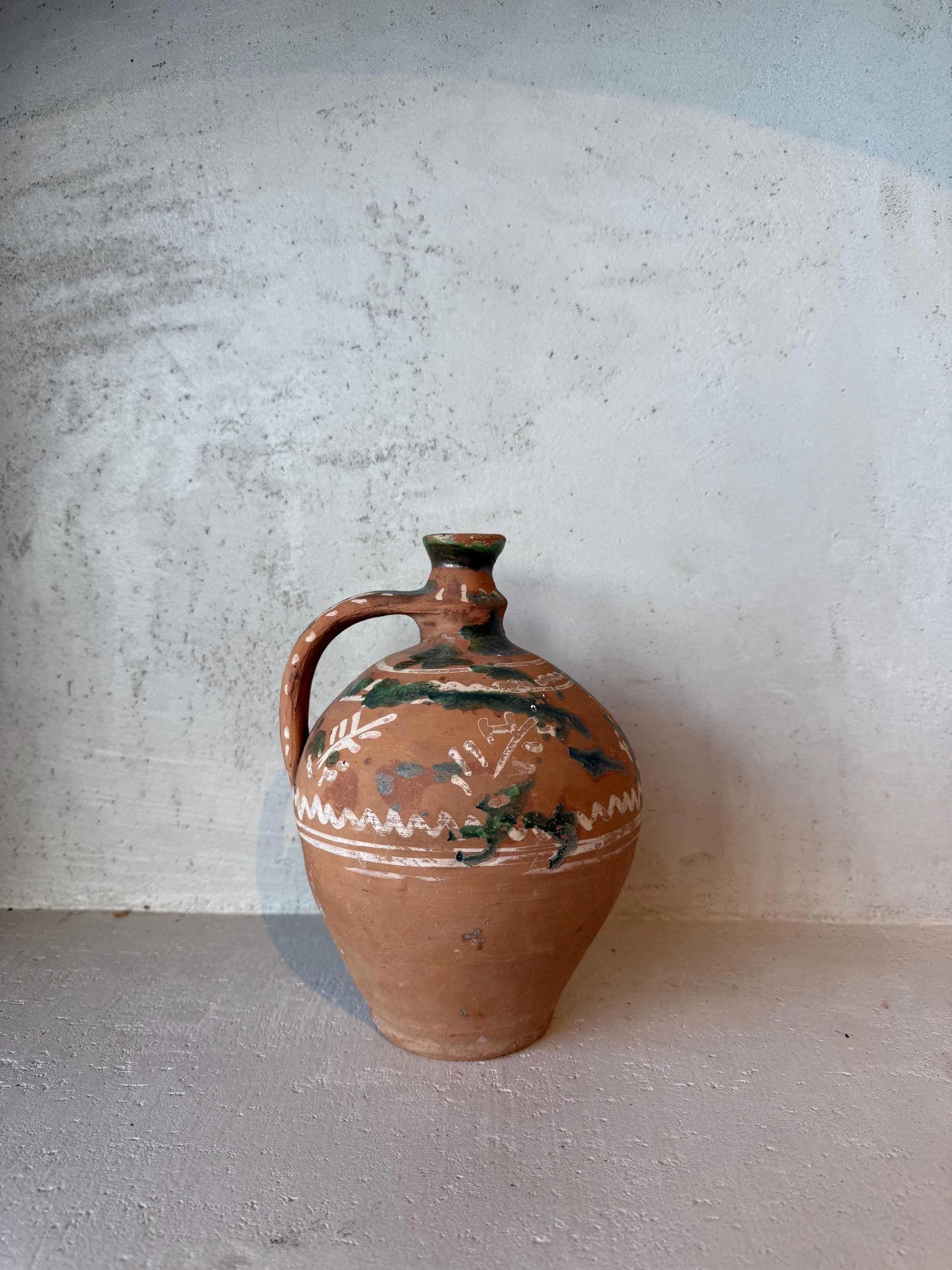 Antique Cretan Terracotta Pot with White Detail