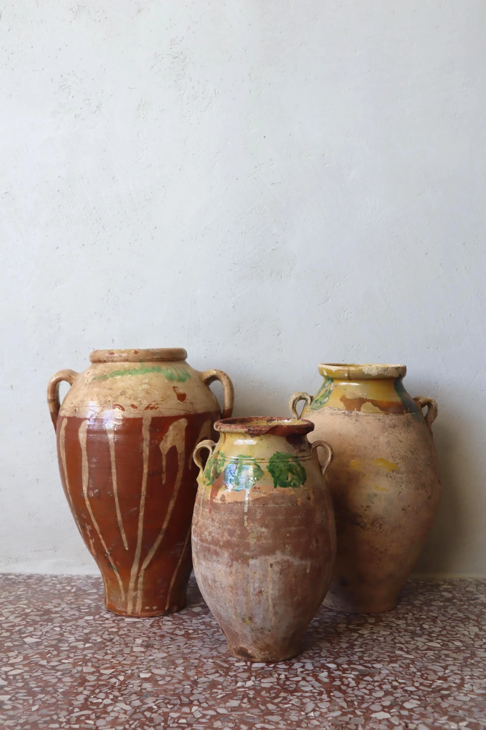 ⚜ This charming 1950s terracotta pot was handmade in Crete and adorned with a delicate white brush pattern, likely used in its day as a practical storage vessel. Its compact size and raw character make it a flexible styling object that radiates quiet warmth and tradition.